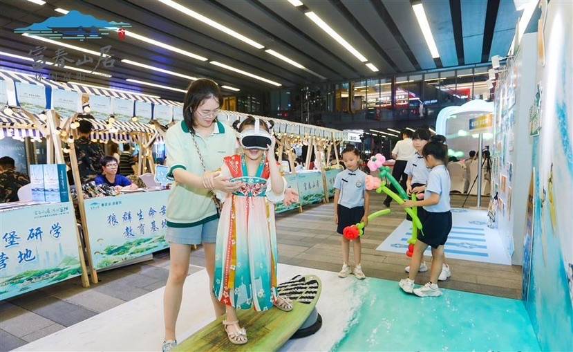 而在“富春味道”市集现场,富阳工艺伞、东坞山豆腐皮、上官羽毛球拍、富阳元书纸等独具富阳特色的农产品与文创产品将一一亮相;合影打卡区,凸显富阳全域旅游特色的富春山水立体造型吸引了众多市民游客驻足照相;互动游戏体验区内,VR冲浪体验处频频人潮涌动,当天引来上千余人流。“希望今后能有机会到富阳实地体验冲浪的乐趣,近距离感受富阳运动休闲的活力氛围。”一位市民表示。