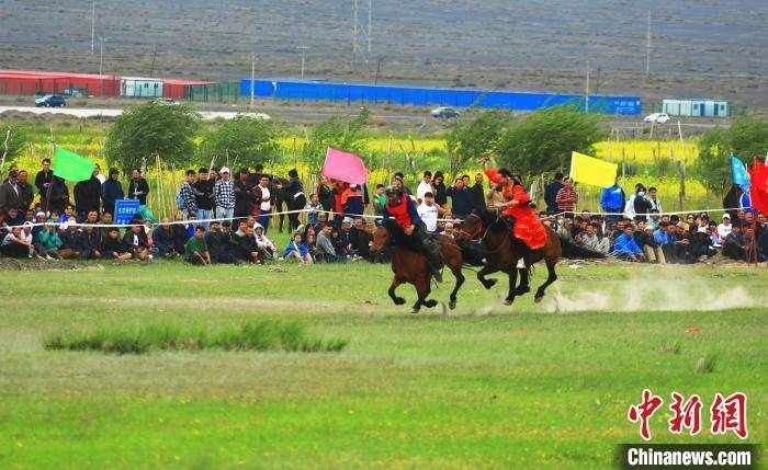 中新网新疆托克逊7月8日电 (李靖海 胡国凯 刘艳敏)马蹄阵阵,呼喊声声。茵茵草地上,哈萨克族小伙子们驾驭着骏马你追我赶,节奏感十足的民族歌曲《黑走马》引得观众纷纷入场跳起了舞蹈…