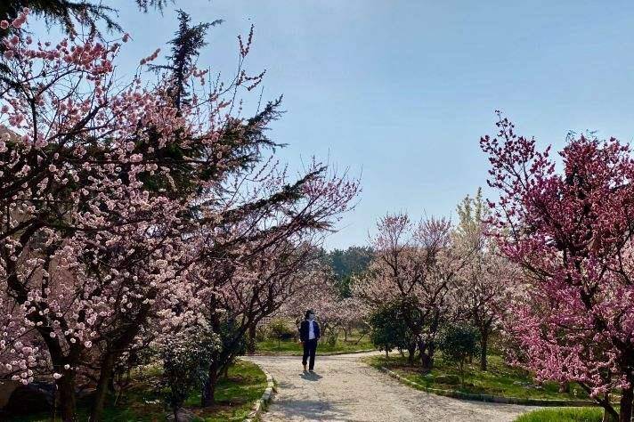 现在小编要跟大家分享个好消息,梅花终于开了,快来十梅庵吧,真的太美了!由于现在疫情还没有结束,所以想要进十梅庵还要进行登记,量好体温以后才可以进入。刚踏入梅园,映入眼帘的就是一条由石板组合成的路,两旁开着各种梅花,漫步其中,好像置身童话中似的。因为工作日,所以没什么游客,园中的游客有三两一群的,也有独自欣赏美景的。