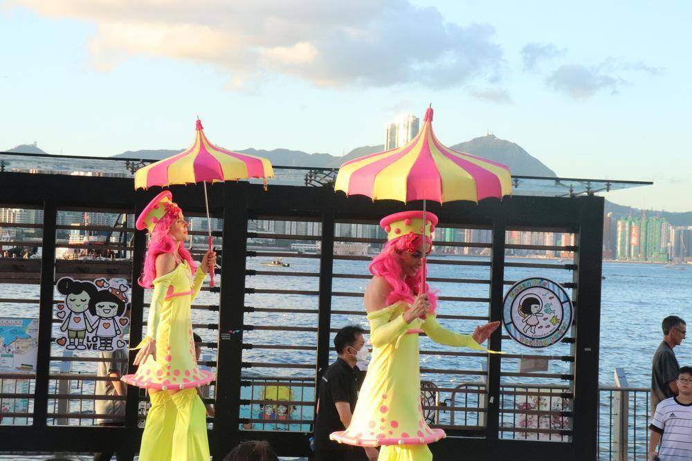 维港水上音乐会邀请了陈慧琳、陈柏宇、宇宙人等香港和亚洲地区知名艺人参与水上音乐会,先后为观众带来流行音乐、摇滚乐、电音等视听盛宴。虽然天气炎热,但观众为各自喜欢的明星应援的热情丝毫未减;维港畔专设的大屏幕也同步直播水上音乐会盛况。此外,旅游发展局还邀请世界各地的街头表演团队为游客们带来以“闪耀”为主题的街头表演;8日当晚,升级版的“幻彩咏香江”水上烟火秀也隆重上演,为维多利亚港增添了绚丽多彩的景色。