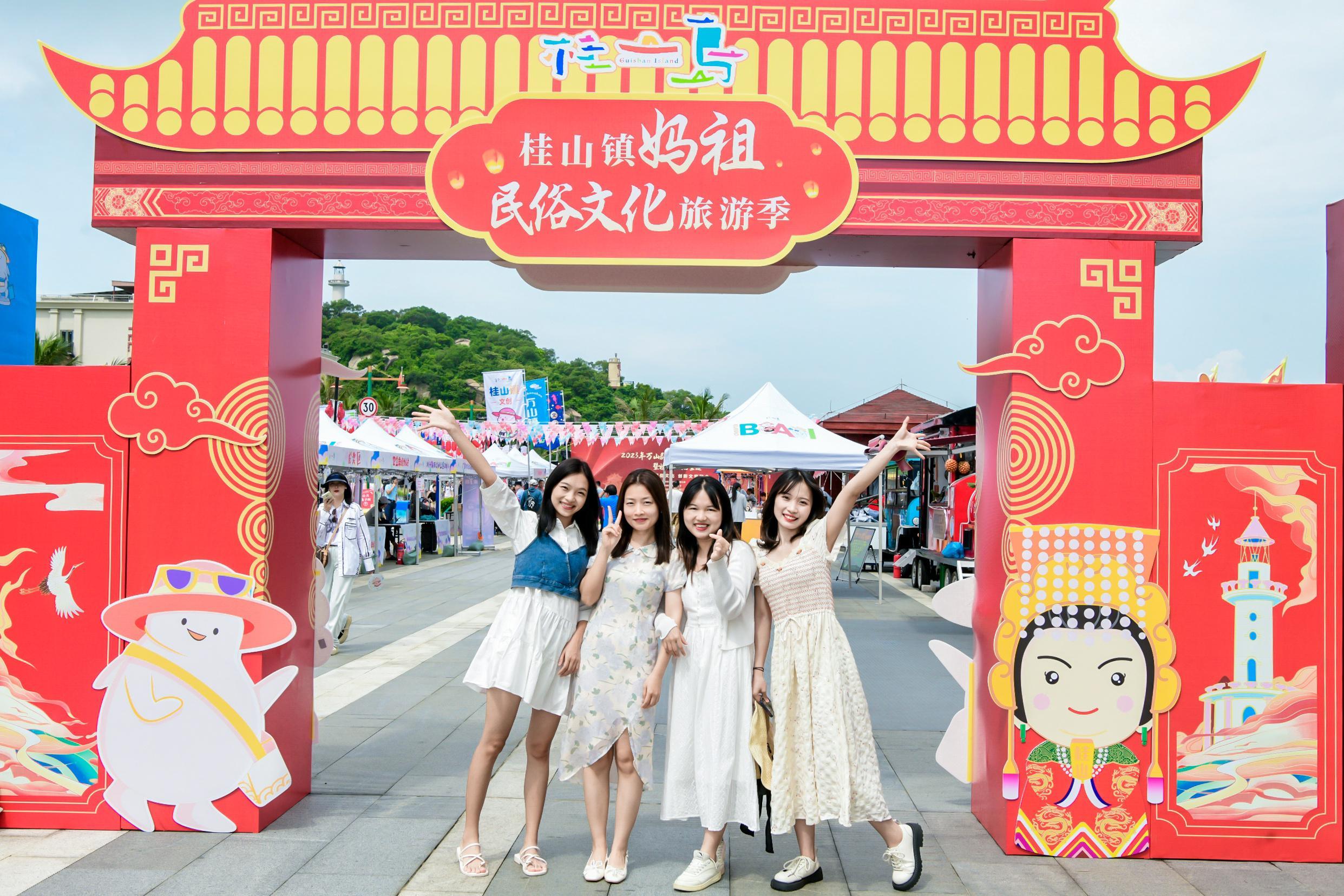 “1+6+1”系列活动是本次旅游季的重头戏,包括开幕式、六大主题区、天后祭等。场内设有美食区、文创区、非物质文化遗产区、灯笼祈福区等主题区域。岛上30多家专卖店展示了海岛水果、海鲜烧烤、龟山白花胶等海岛美食,让游客领略海岛风情。会议。此外,舞狮表演、非物质文化遗产变脸、妈祖故事舞台剧、民歌歌谣等20余项特色活动吸引了众多游客观看。