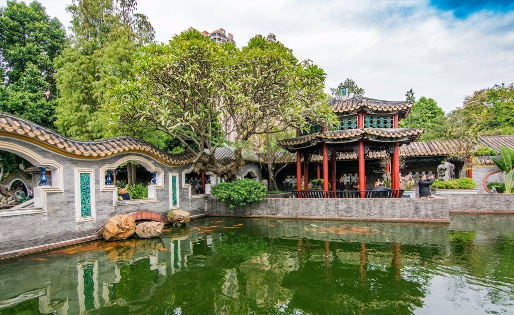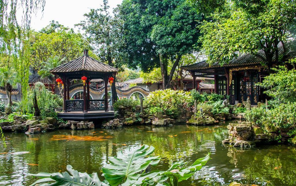 大园包小园是顺德清晖园的主要建筑特色,沿着曲径回廊游览,遇碧池、过粉墙,望阁楼,忽而进入庭院内部,忽而在拱桥上看锦鲤嬉戏。