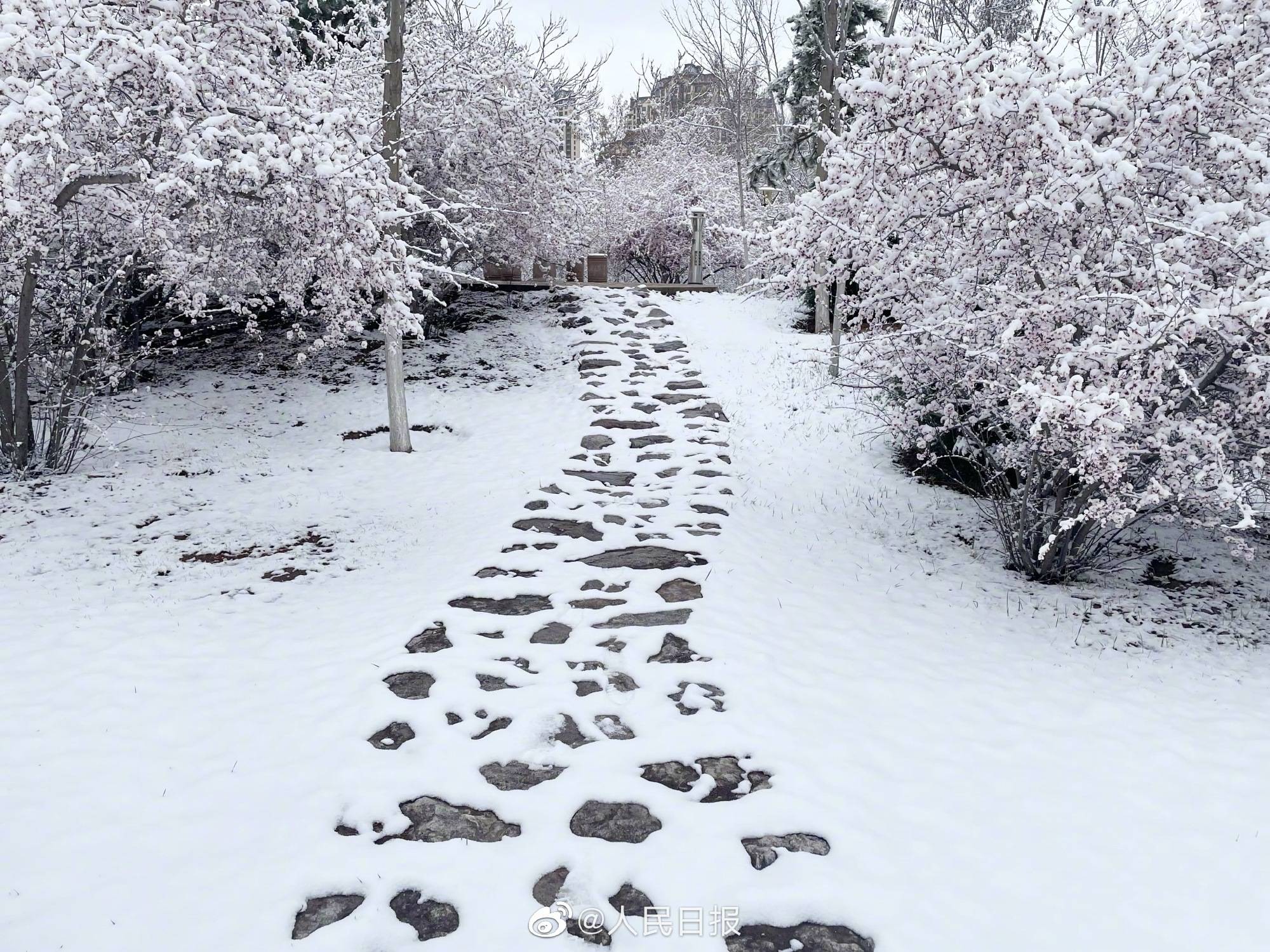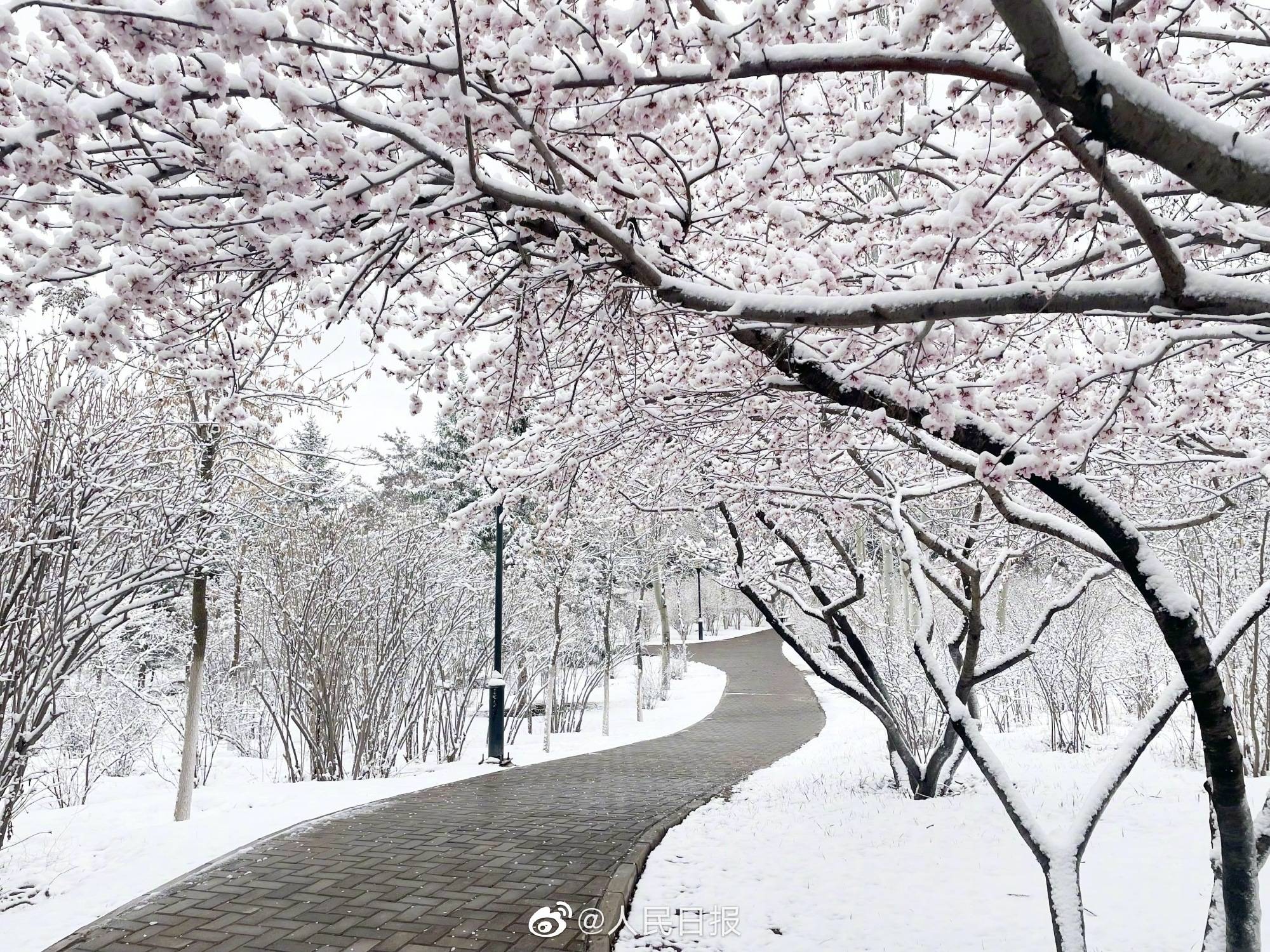 4月3日,甘肃定西,安定区生态公园迎来一场春雪。