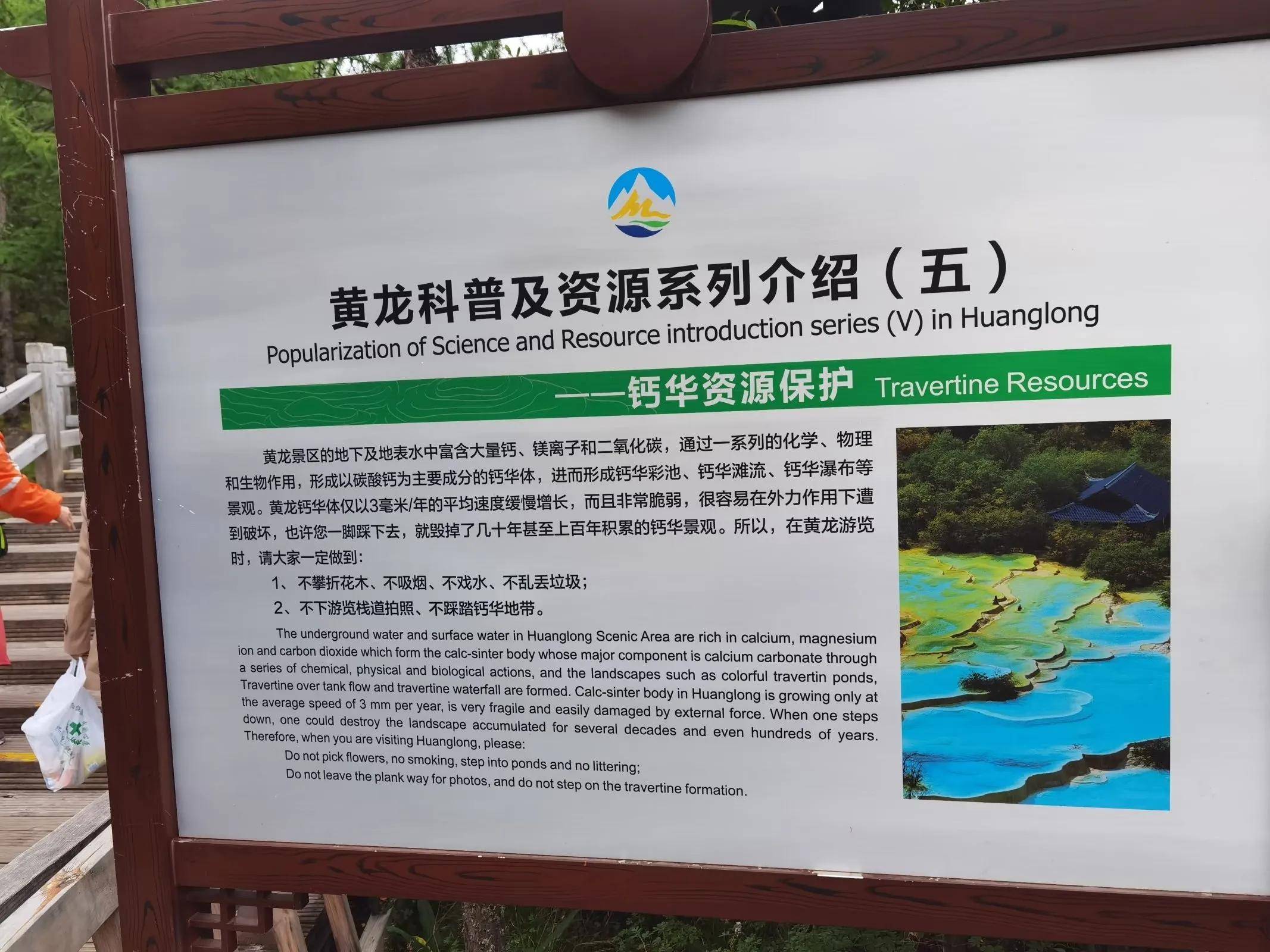 以下内容是我查阅到的黄龙景区信息。黄龙位于松潘县境内,靠近岷山山脉南段,距县城56公里。它是川西北高原上的一颗风景瑰宝,素有“人间仙境”之称。景区由药明风景区和牟尼沟风景区组成,面积约700平方公里。地表的石灰华是耀明景观的最大特色。其规模之大、形式之多,为世界罕见。这些洞石景观,尤其是洞石彩池和洞石海滩,在山峦、峡谷、雪峰、瀑布、湖泊、林海交织的背景下,展现出神奇的形象。前后殿之间,有大小千潭层叠,形如梯湖,水色绚丽。这是一个很棒的图片卷轴。主景区药名沟位于岷山主峰雪宝顶下方。全长3.6公里,宽30-30-170米,呈宽阔山谷状。入口处被淡黄色洞石覆盖,在阳光的照射下,犹如一条金龙在伟大的林海之中徜徉、驰骋,故名黄龙。