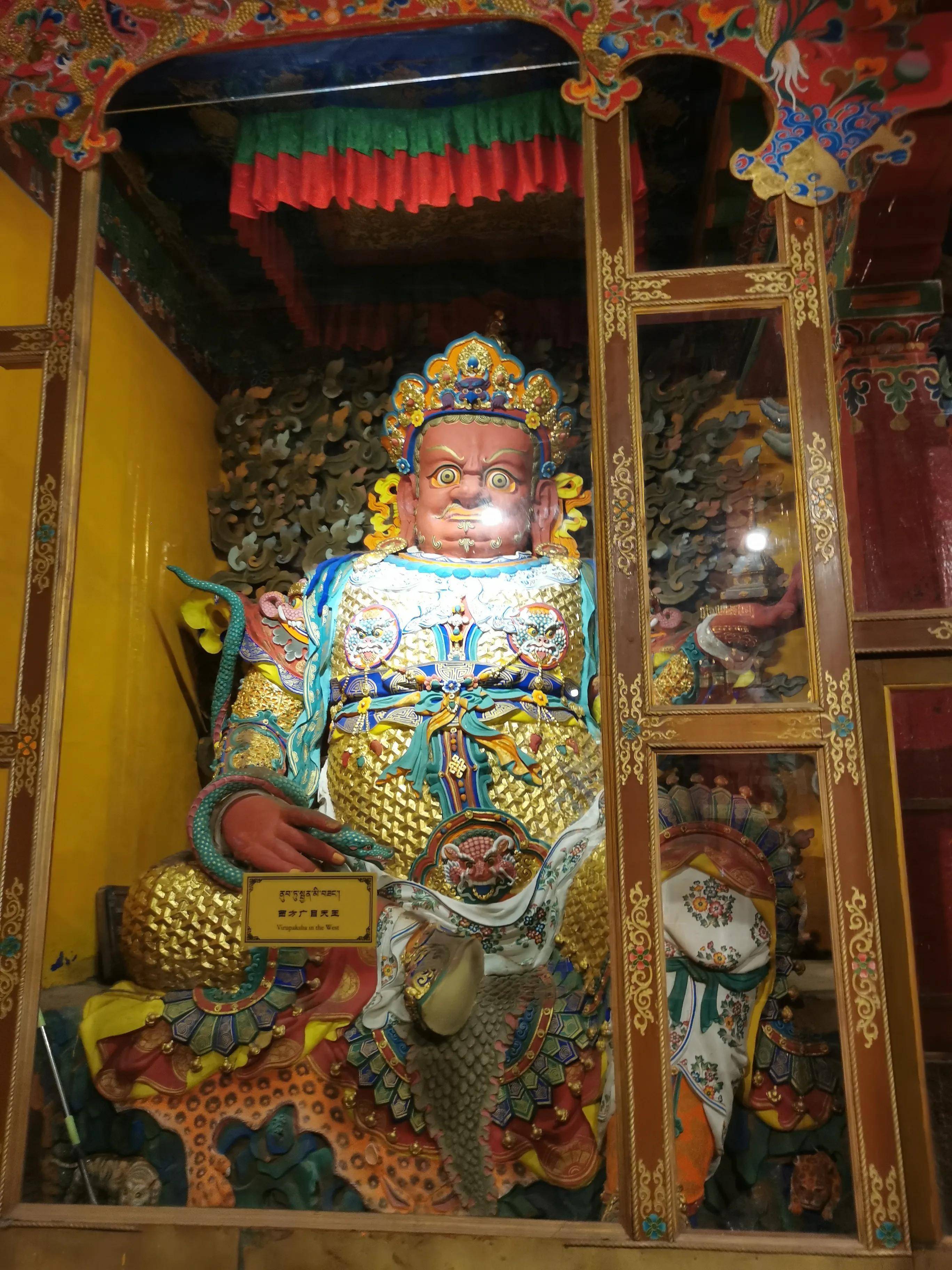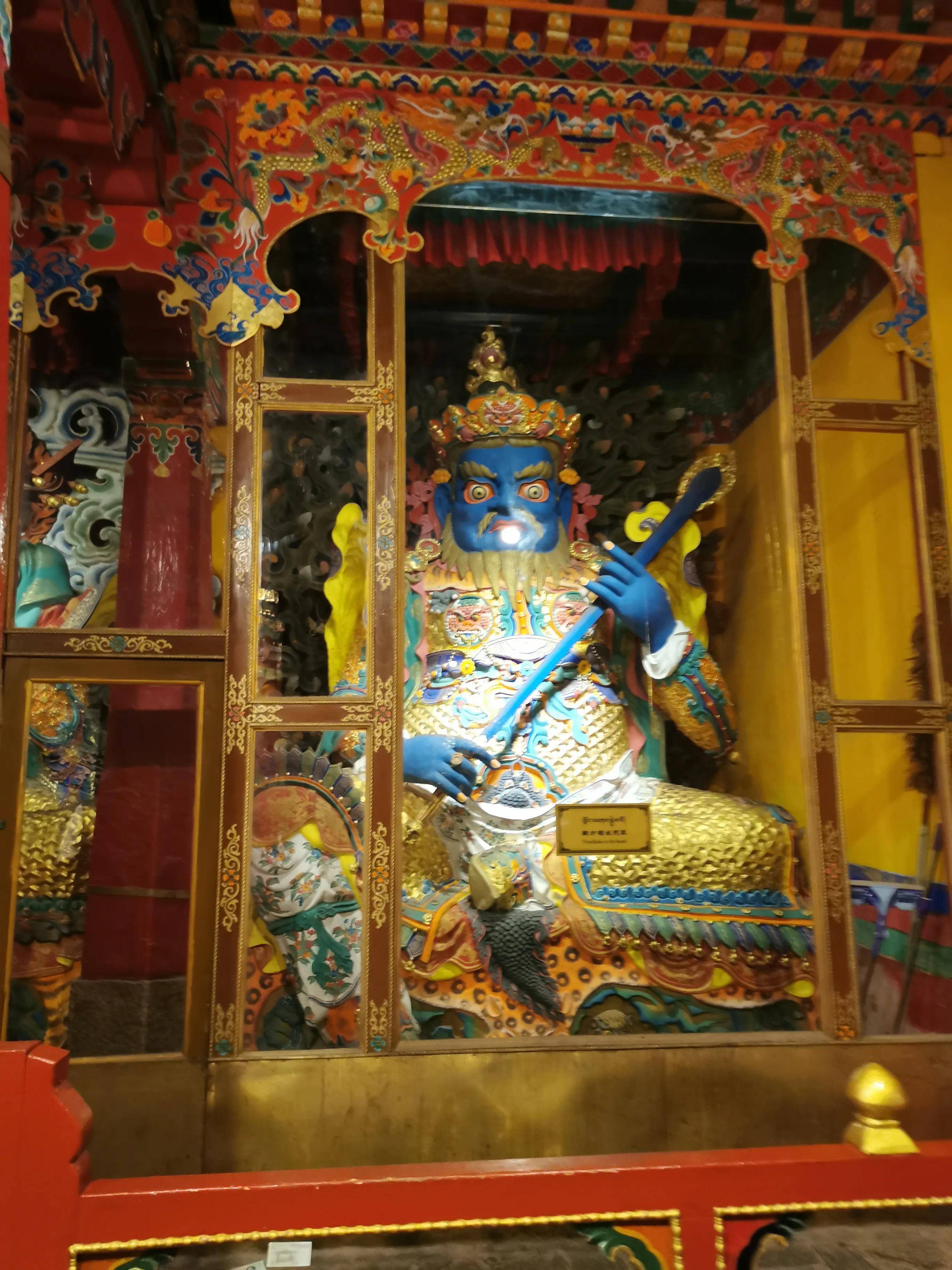 二楼是金色的屋顶,但是解释说不是金子做的。至于神佛像,有的是真人的,有的是想象的。莲花生大士、宗喀巴大师等它们是现实生活中的版本。塑像多为释迦牟尼和松赞干布,他们在思想或政治上做出了巨大的贡献。