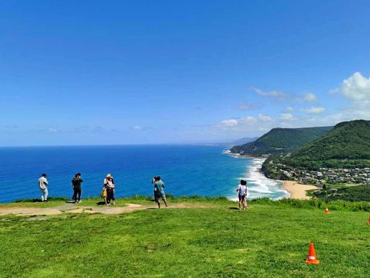 StanwellTops距离悉尼辛比奥野生动物园不远。2023年4月13日下午,我参观完动物园后抵达StanwellTops。天气很好,悬崖上聚集了很多游客。这里有面海陡峭的悬崖,地势较高,一望无际的大海,天海一色。从高处往下看,可以看到下面的沙滩和远处的海崖大桥。风景很美。这里是滑翔伞和跳伞的好地方。