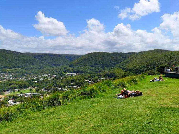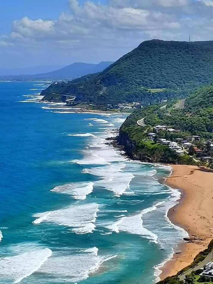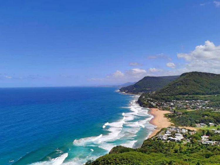 从斯坦威尔山顶(StanwellTops)的高地往下看,可以看到下面的沙滩和远处的悬崖桥。风景很美。