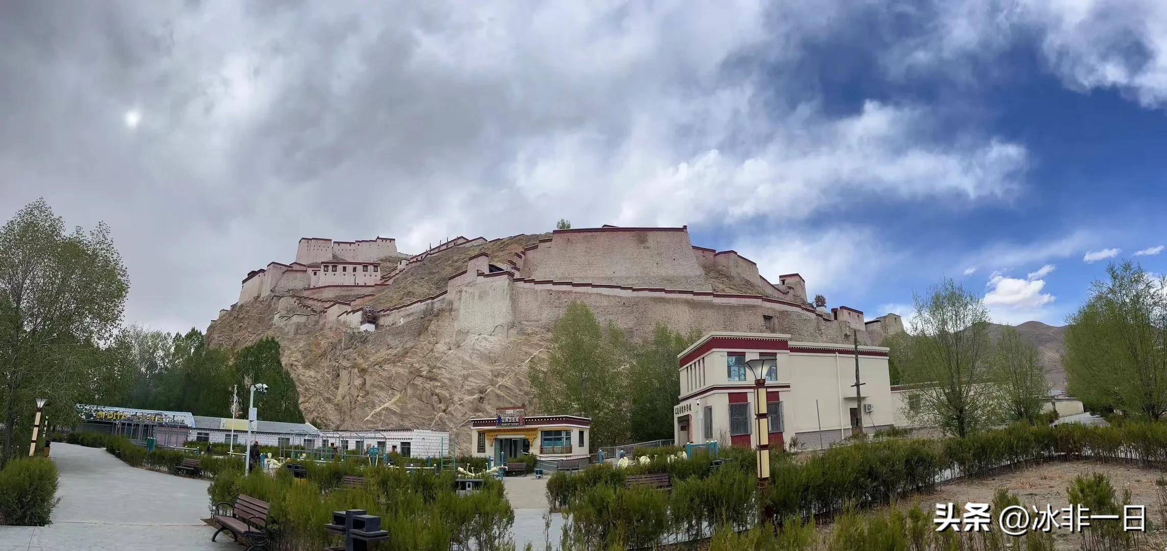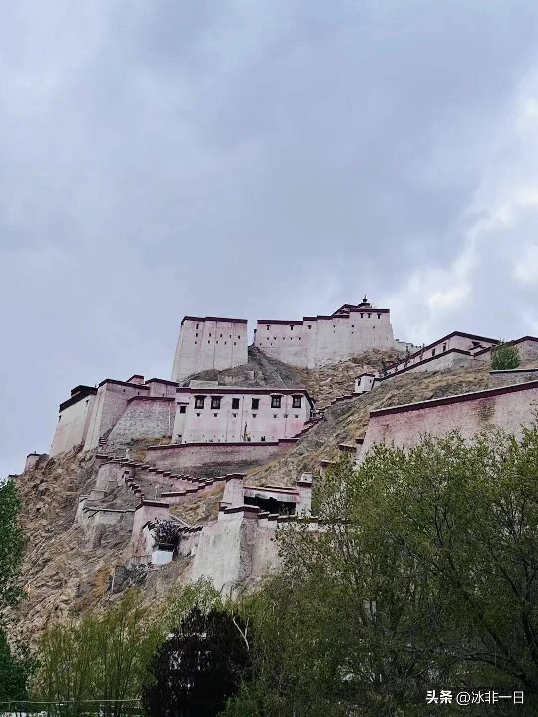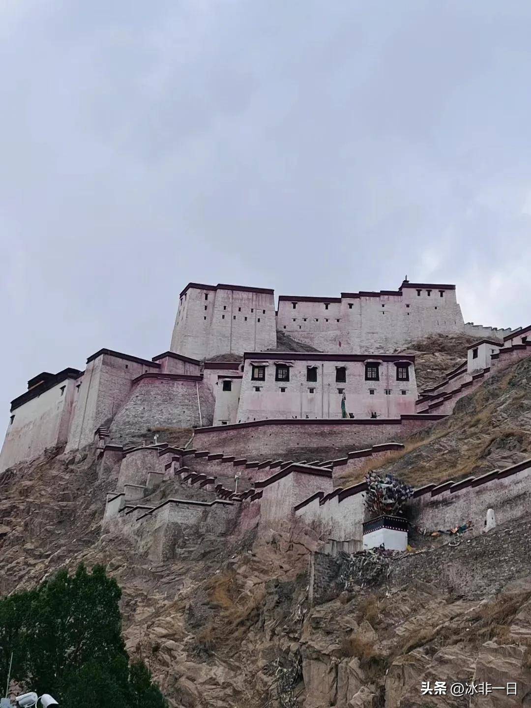 当我们经过江孜地区时,几个哥哥在附近的山上看到了一座白墙红顶的城堡。它特别明显和引人注目。大家都很兴奋,争先恐后地跑到拐弯处去看他。老城堡。宗山抗击英军的历史是一段英雄的历史。1904年4月,英军再次进攻江孜。他们用先进的武器滥杀无辜。两个多月来,藏族军民手持陶器和大炮,在宗山上顽强抵抗。仓库意外爆炸,弹药和食物耗尽,反英雄战士全部壮烈牺牲。电影《红河谷》就是根据这个历史事实制作的。由于时间已晚,门关着,我只能到外面看看。