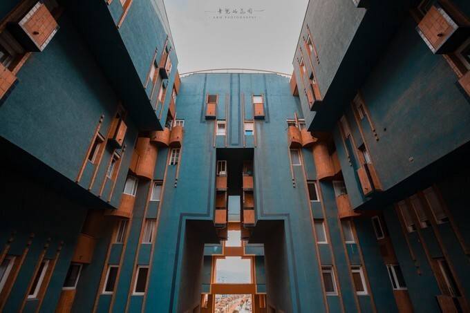 穿梭在迂回曲折的过道间,门前的绿植、阳台上的白色躺椅、转角晾晒的衣服,现实与魔幻交叠,这座未来感十足的建筑里依然是浓浓的人间烟火气息。