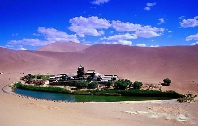 第五站就是鸣沙山月牙泉了,鸣沙山月牙泉位于甘肃省敦煌市城南 5公里,沙泉共处,妙造天成,古往今来以“沙漠奇观”著称于世。鸣沙山以沙动成响而得名。人乘沙流,有鼓角之声,轻如丝竹,重若雷鸣,此即“沙岭崐晴鸣”。月牙泉胙于鸣沙山环抱之中,其形酷似一弯亲月而得名,古称沙井,又名药泉,水质甘冽,澄清如镜,绵历古今,沙不进泉,水不浊涸。铁鱼鼓浪,星草含芒,水静印月,荟萃一方,故称“月泉晓澈”。