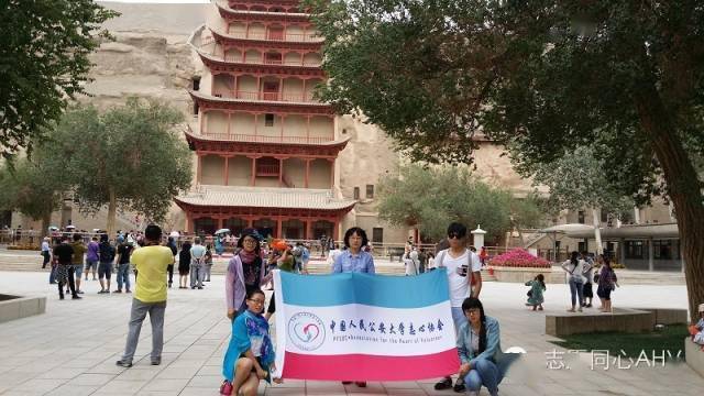 2014 年8月18日,敦煌市的天气是沙尘暴,虽然没有刮风,但是呼吸一下,打个哈欠就是一鼻子一嘴的沙子。我和小伙伴们约定在敦煌公园集合开始了志愿传递的第一站。