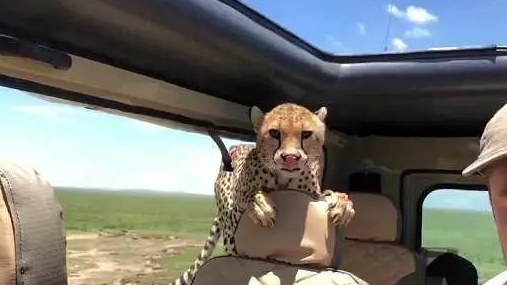 据英国每日邮报报道,前不久,一个美国旅行团在非洲塞伦盖蒂国家公园遇到了猎豹,让人难以想象的是,这只猎豹居然爬进了旅行团的车。如此近距离的看到猎豹游客们都吓得毛骨悚然。