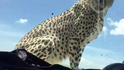 幸好,猎豹似乎对他们没什么兴趣,看完车后座后,它又爬到车的前面看了看,留下这些惊魂未定的人们,它头也不回的走了:“你们不合我的胃口”。