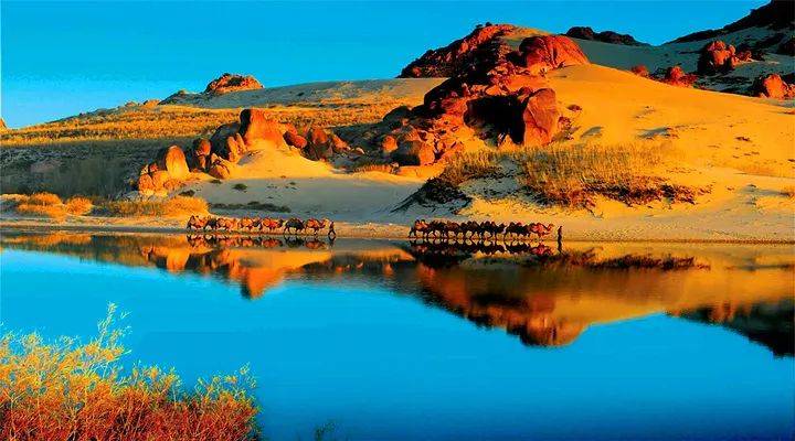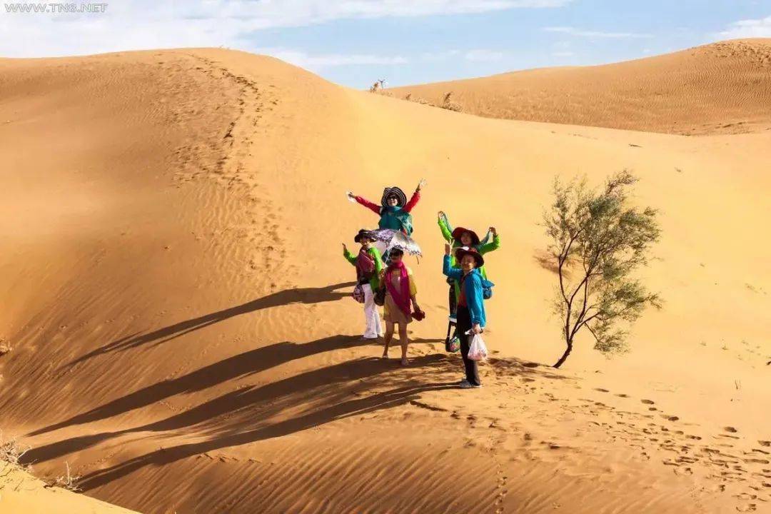 沙漠探险是一项集体活动,导游、驼工、游客要精诚团结,顾全大局,切莫单独行动,旅游活动才能锦上添花。