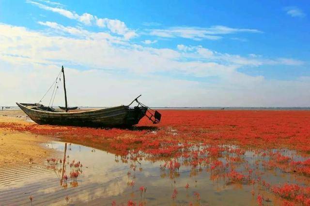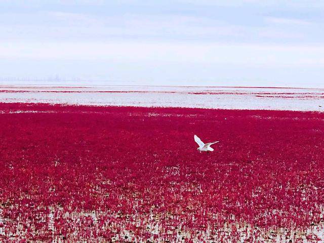9月至10月中旬是观赏红海滩的最佳时节,10月中旬后草色开始变紫。看红海滩最好的时候则是早晨,如果幸运的话,赶上晴天,潮水退际去,鲜红的赤碱蓬开始一点点从水里露出来,恰如红色地毯逐渐展开,分外妖艳。
