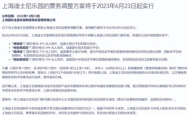 去年12月,上海迪士尼乐园宣布于今年6月23日起上调门票价格,其中“常规日”门票、“特别常规日”门票、“高峰日”门票、“特别高峰日”门票将分别上涨到475元、599元、719元、799元,比之前分别增加了40元、54元、60元、30元。