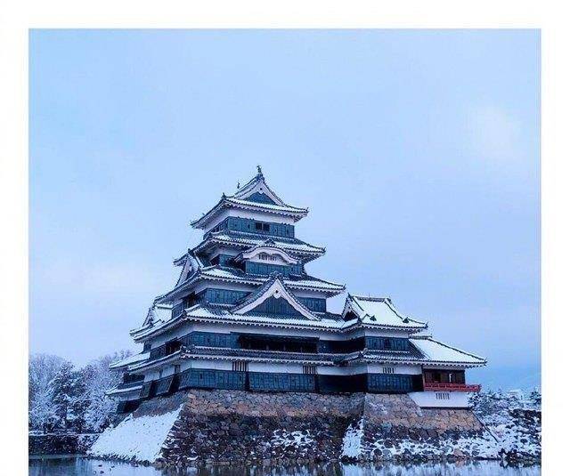 雪中的松本城风景很赞,好像披上了一件白色的外衣,显得庄重又肃穆。松本城是日本现存的五重六阶的天守中最为古老的国宝城。黑与白的对比呼应出日本阿尔卑斯山群的华丽景象。