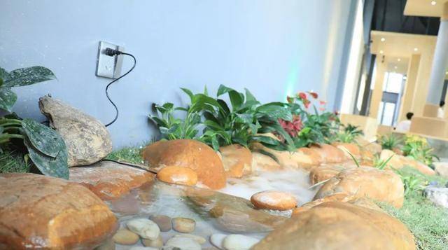 鹅卵石和绿植点映交缀,