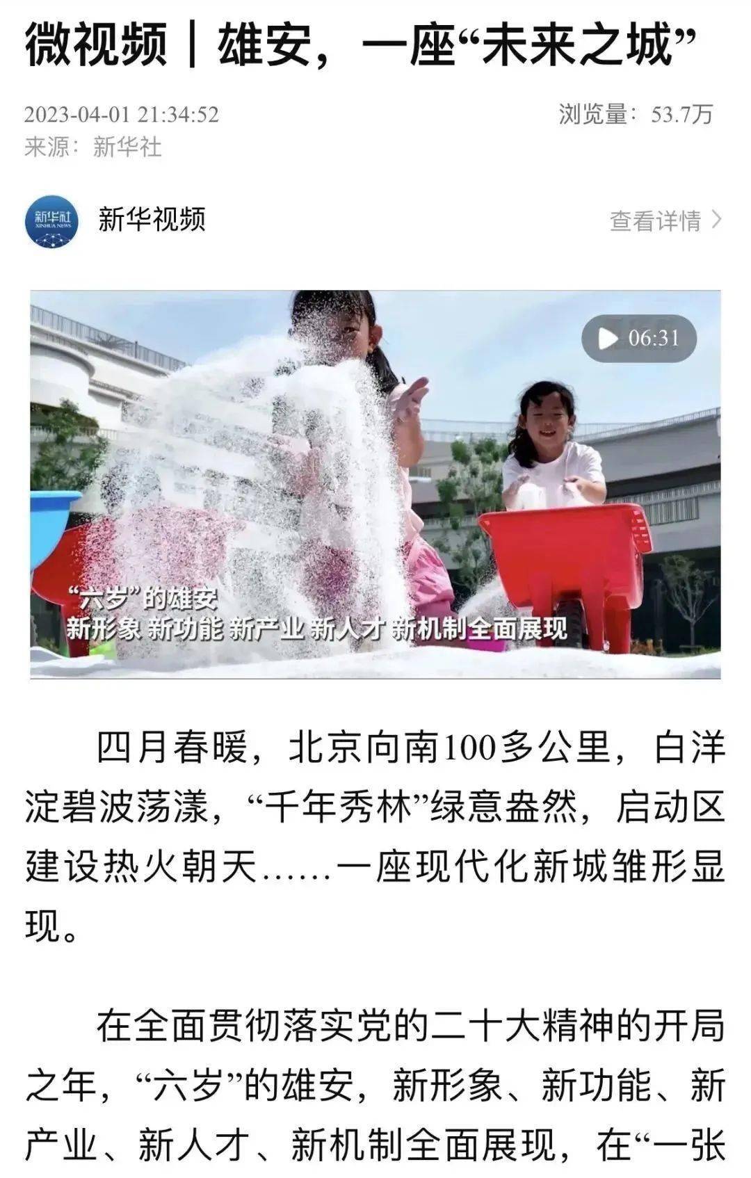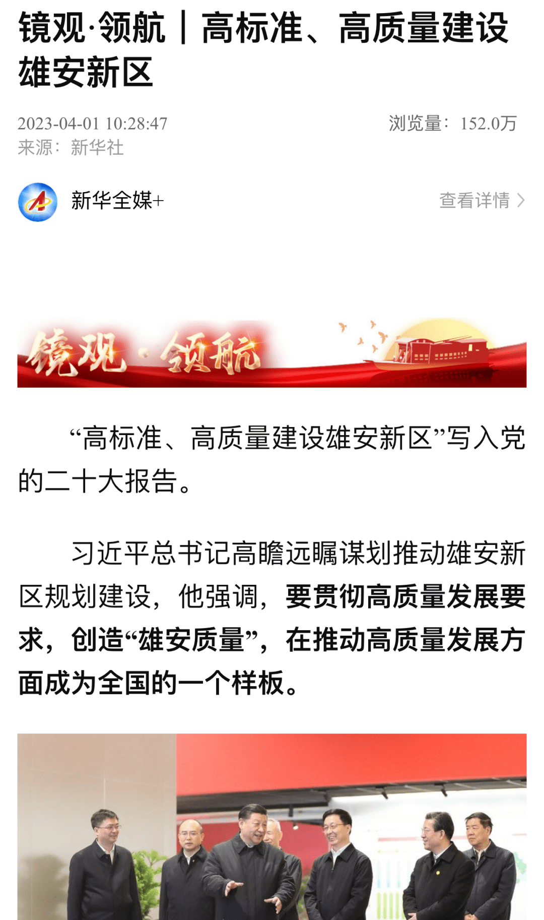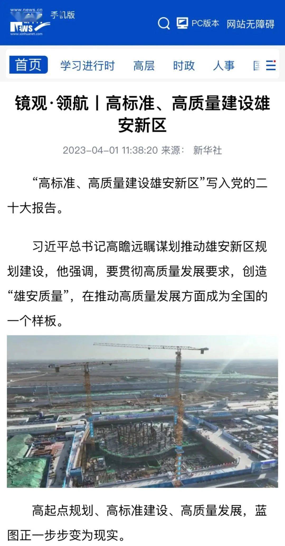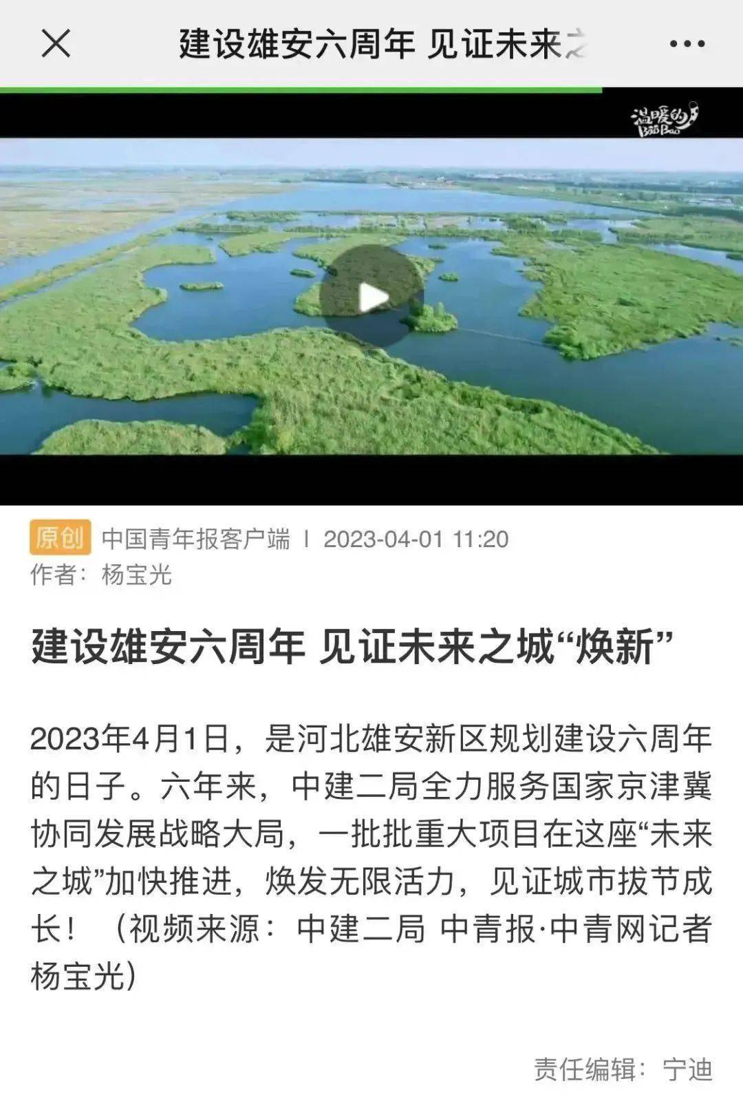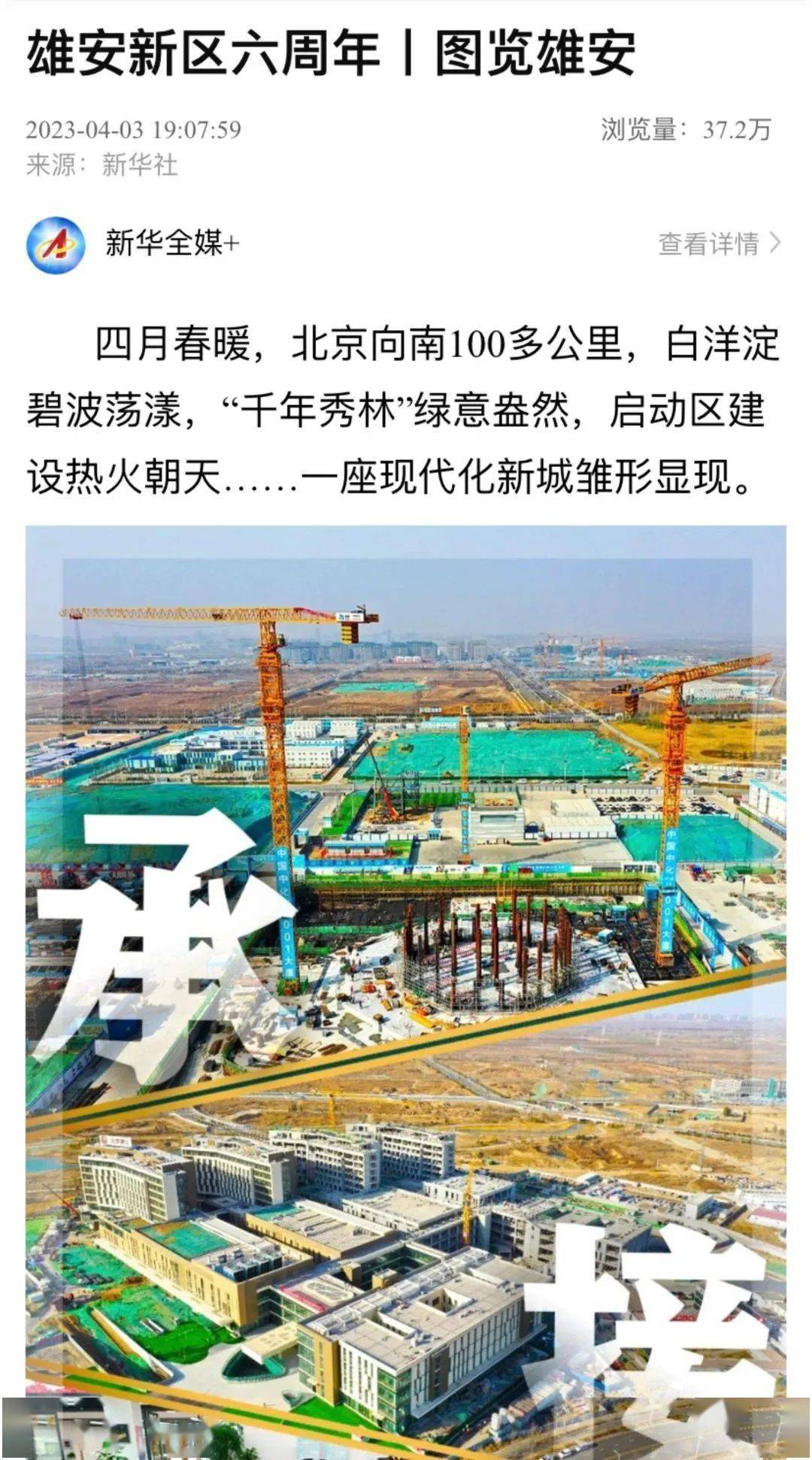 4月1日,新华社资讯《 听,雄安奋斗者的心声》一文报道中建二局三公司河北建投雄安·金湖未来城第三四标段项目建设内容。
