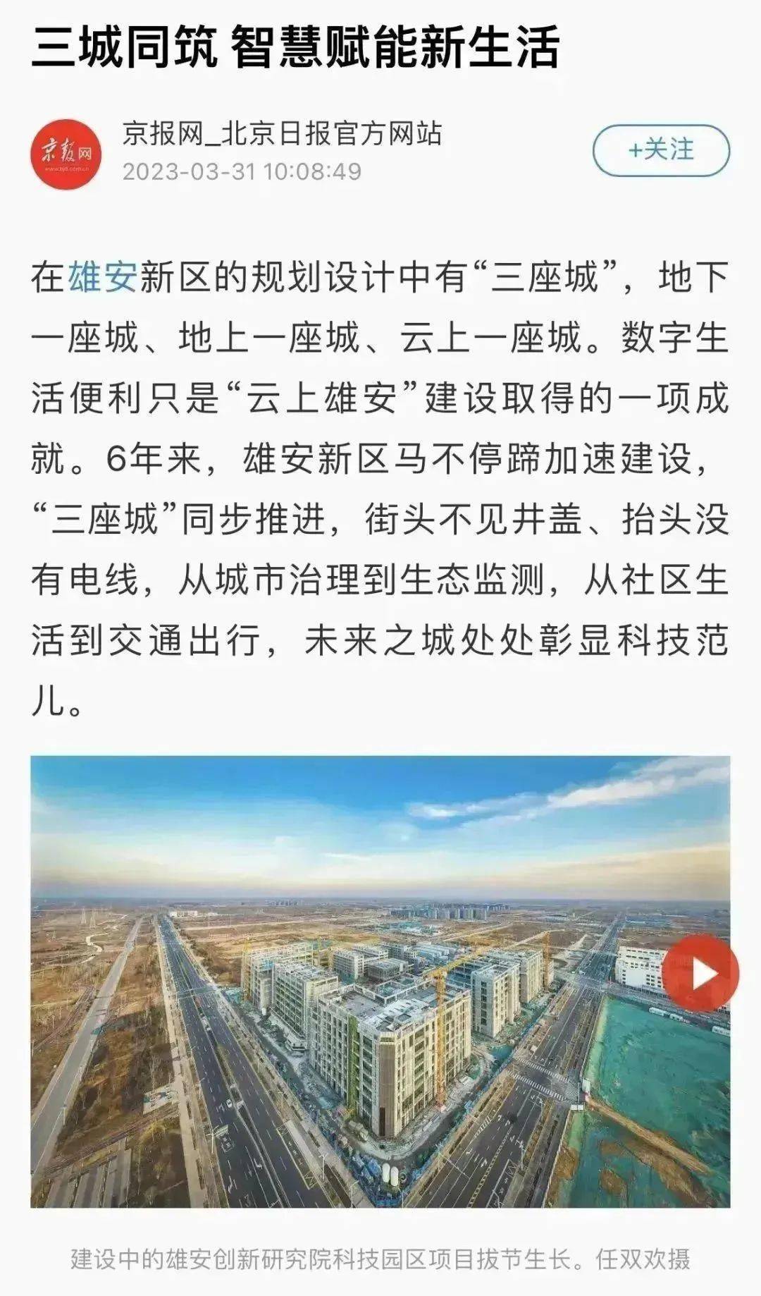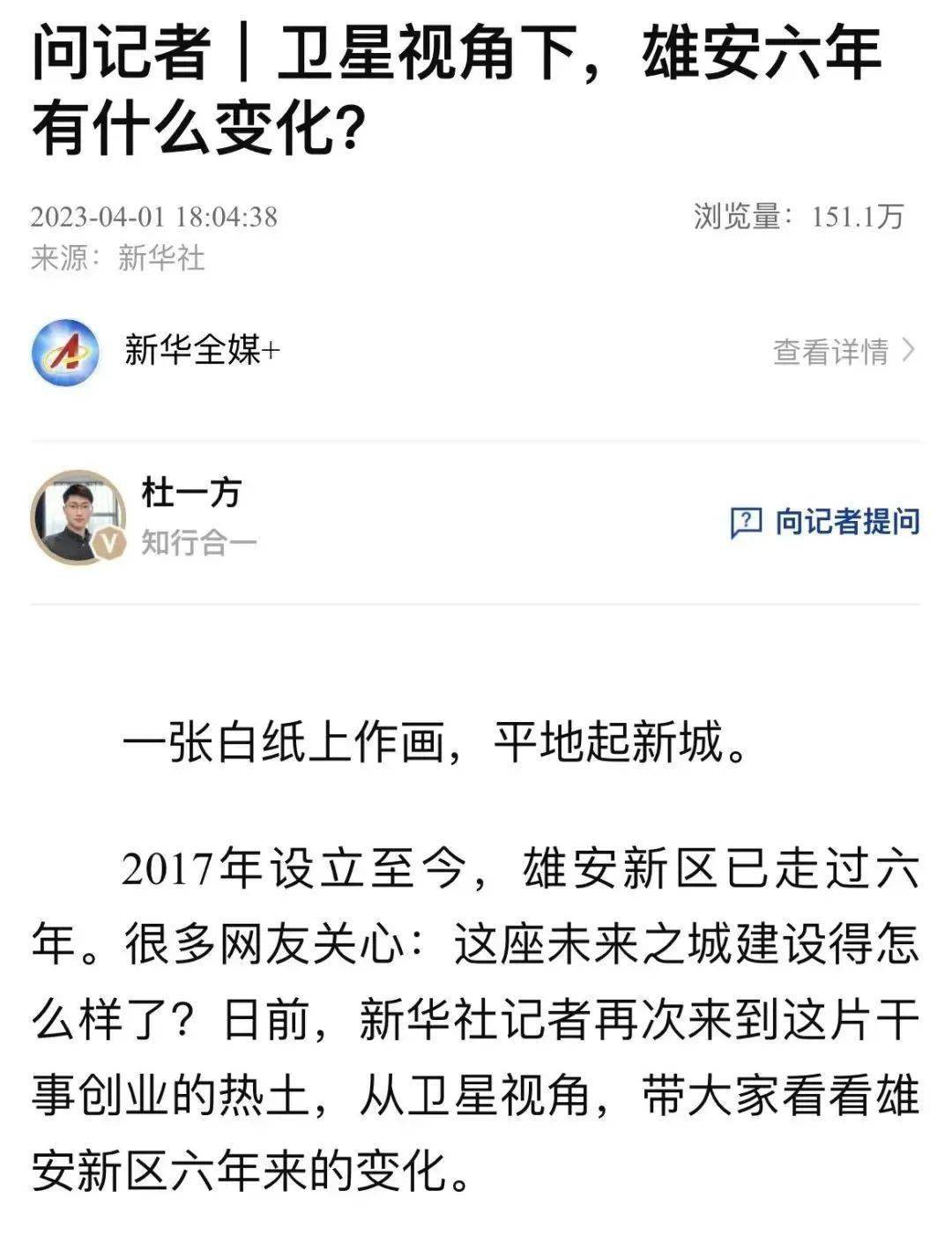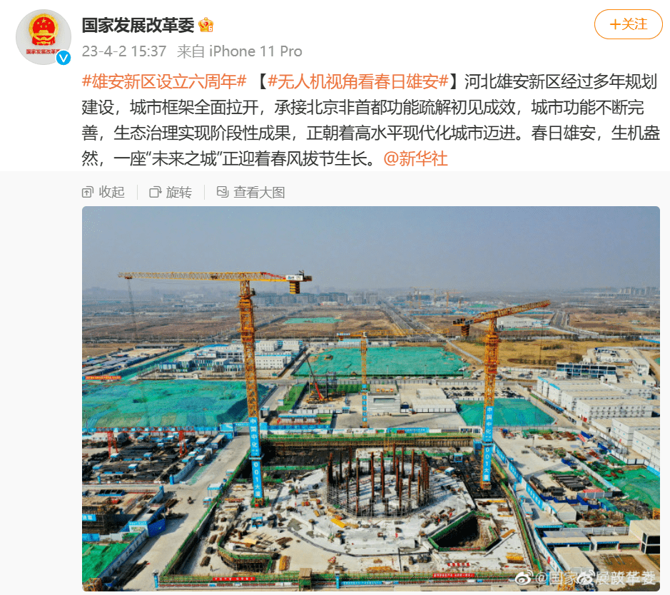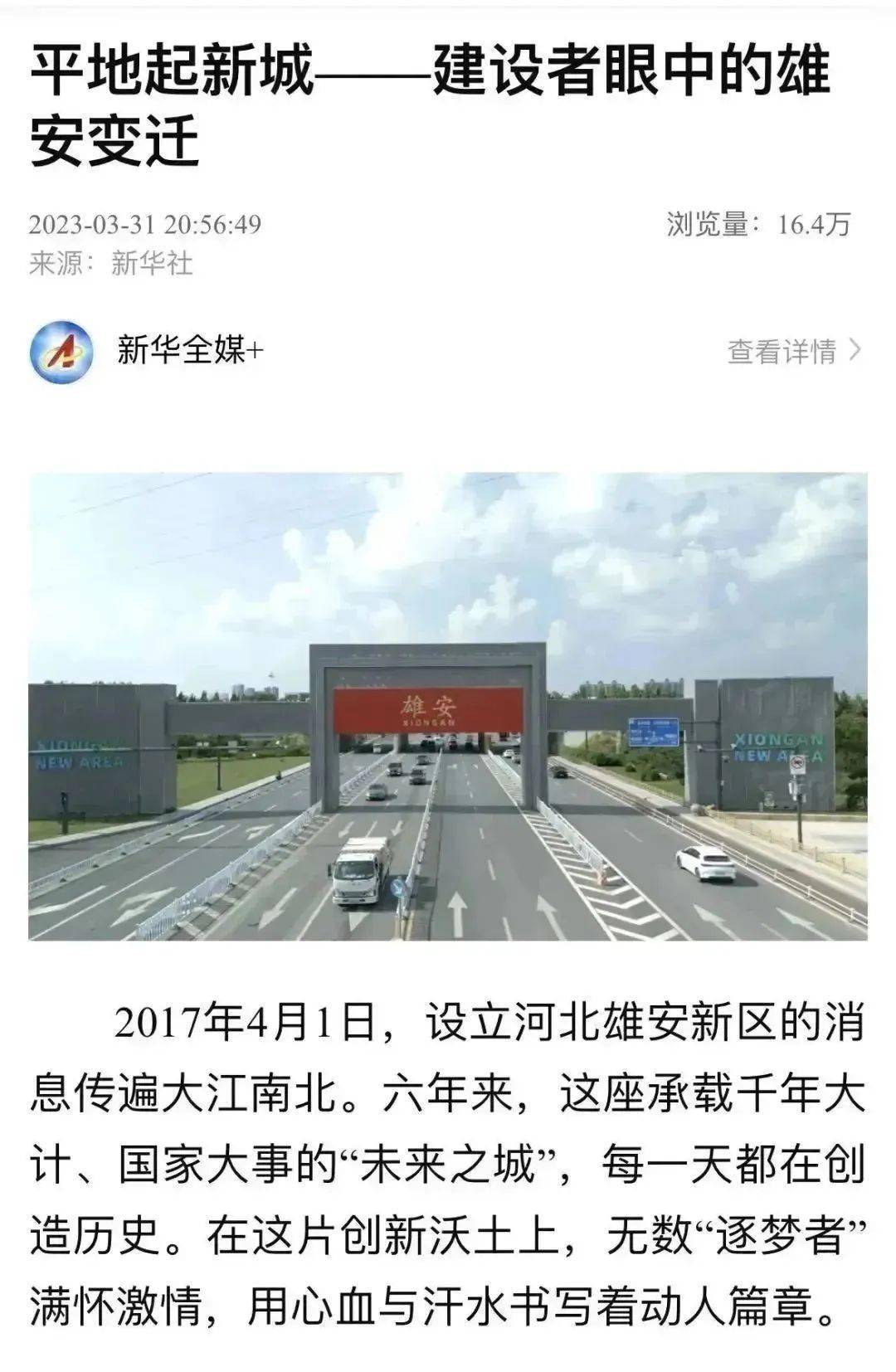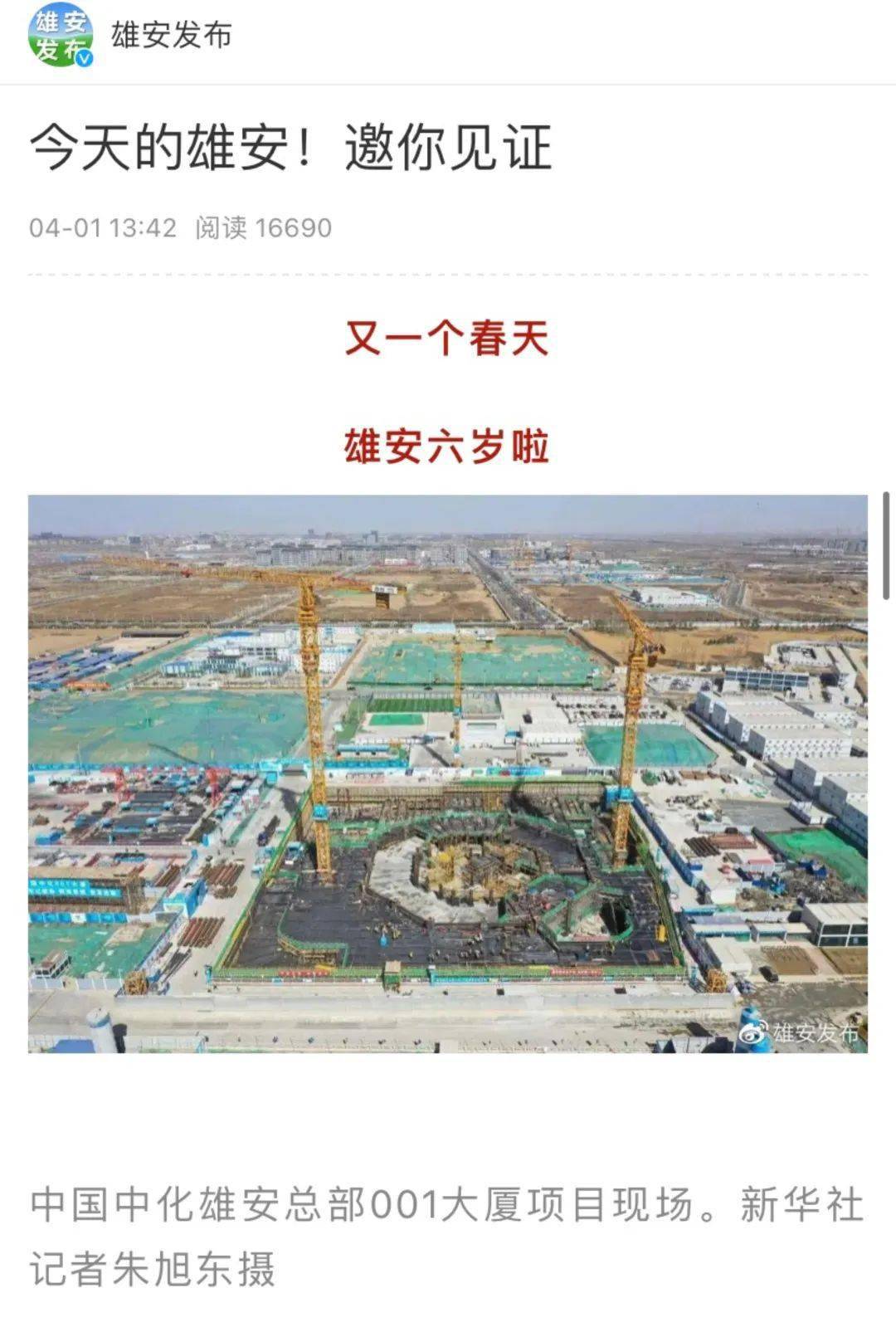 4月1日,新华全媒+《 问记者|卫星视角下,雄安六年有什么变化?》一文报道中建二局三公司中国中化总部001大厦项目建设内容。