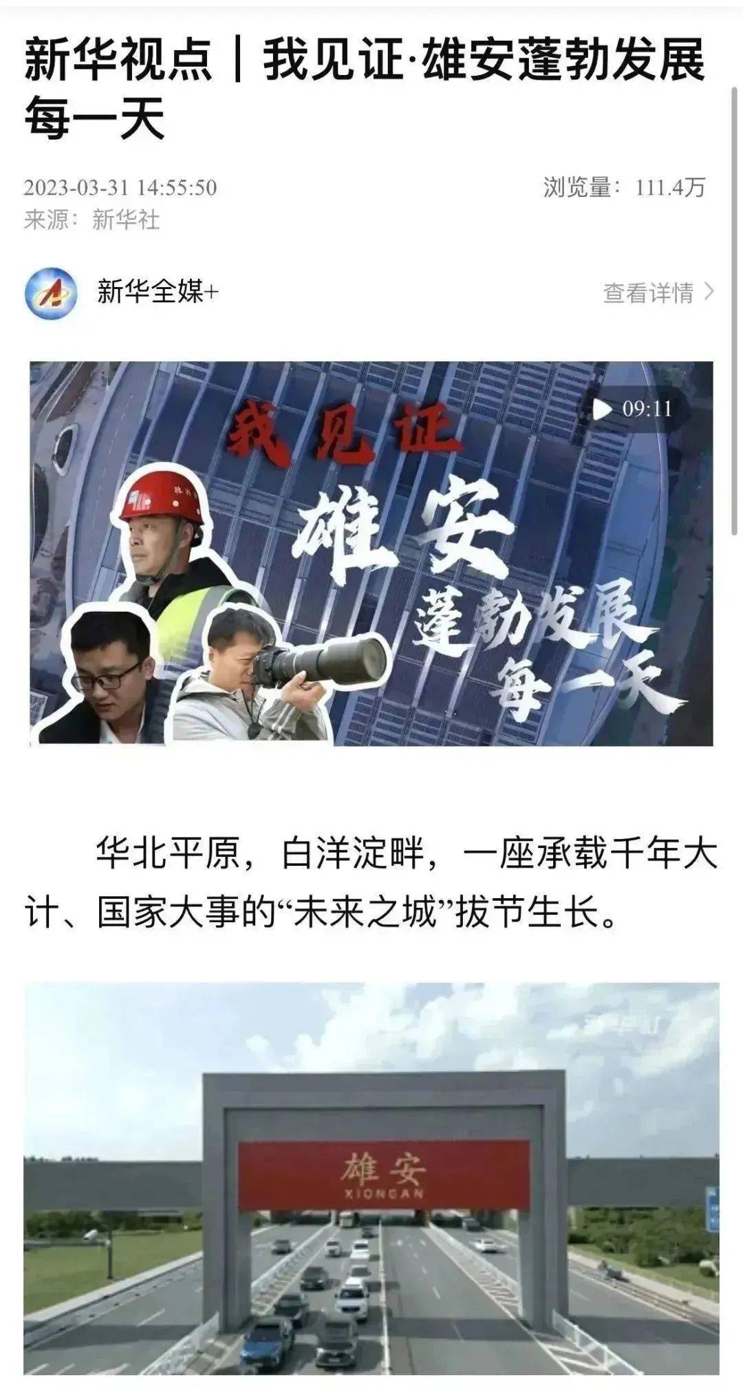 3月31日,新华全媒+《 新华视点|我见证·雄安蓬勃发展每一天》一文报道中建二局三公司河北建投雄安·金湖未来城第三四标段项目建设内容。