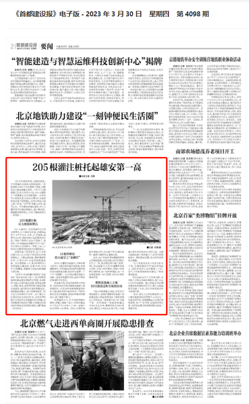 3月7日,新华社经济参考报《 “双向奔赴”促“未来之城”建设提速——央企落户雄安“生长”记》一文报道中建二局三公司中国中化总部001大厦项目建设内容。