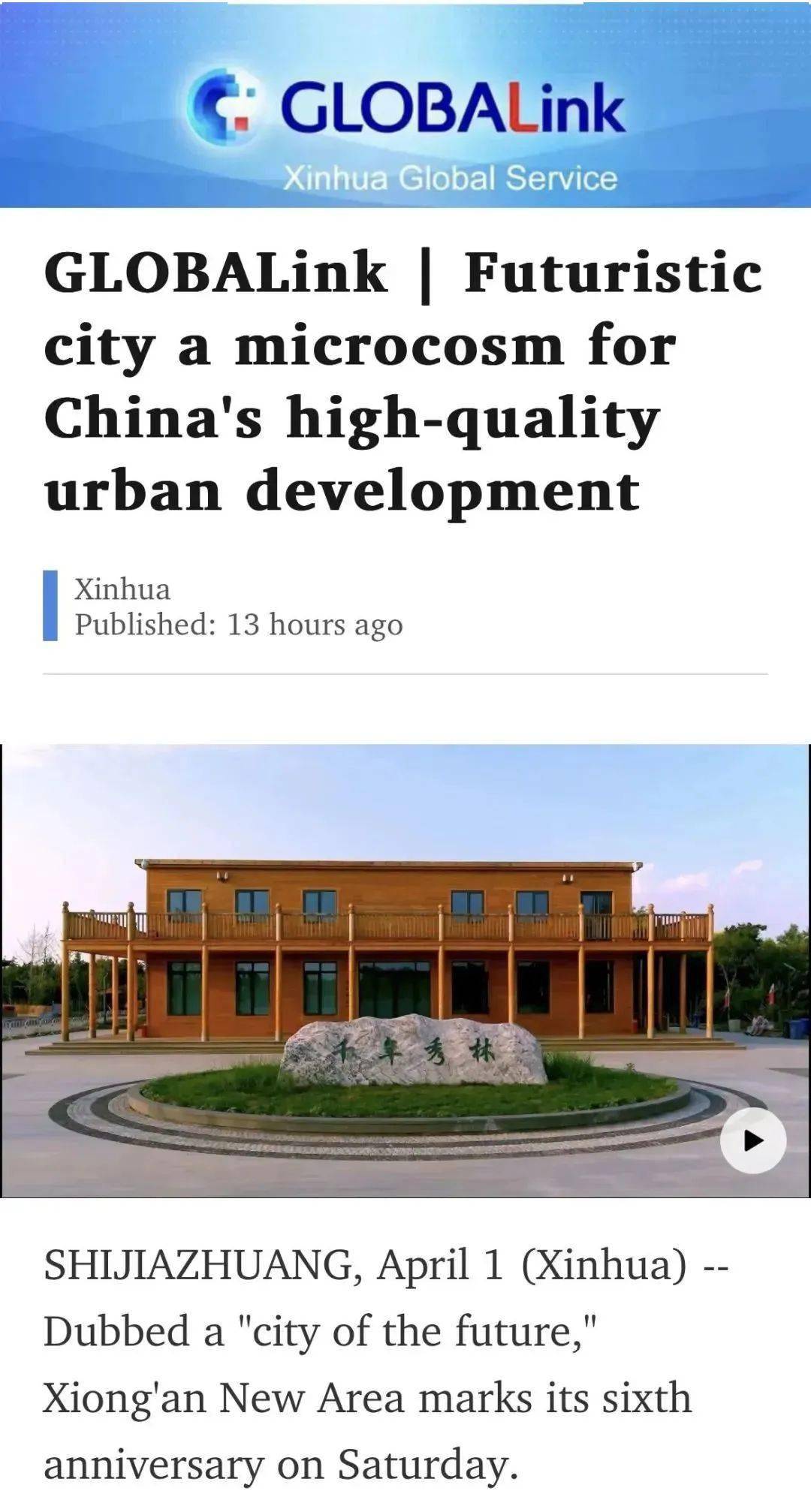 4月1日,新华社海外《 GLOBALink | Futuristic city a microcosm for China's high-quality urban development》一文报道中建二局三公司中国中化总部001大厦项目建设内容。