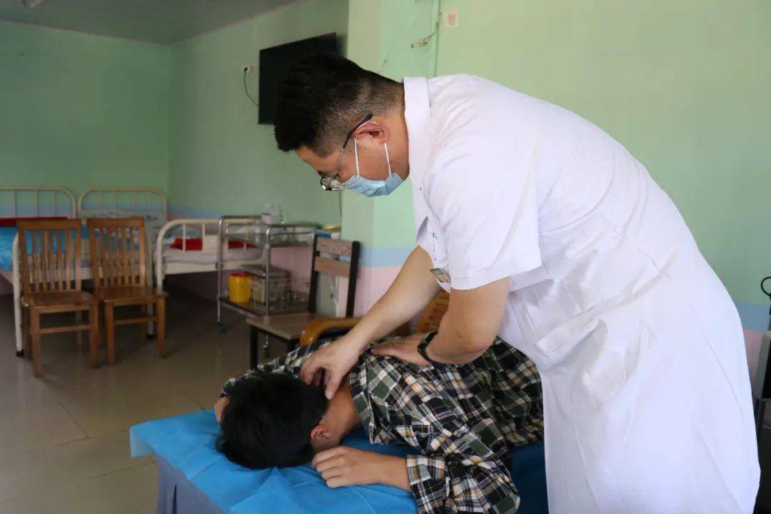 说话间,一名颈椎拉损的患者来到了卫生室,询问了病情后,邢治华放下手中的活,起身带着患者来到了诊疗室,运用专业的中医手法开始为患者进行了复位,熟练的处理后,患者的不适得到极大的缓解。