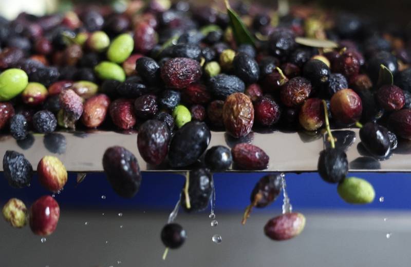 2021年12月8日,在陇南一家油橄榄加工企业的生产线上,刚刚采摘的油橄榄清洗后准备进行粉碎搅拌。 新华社发