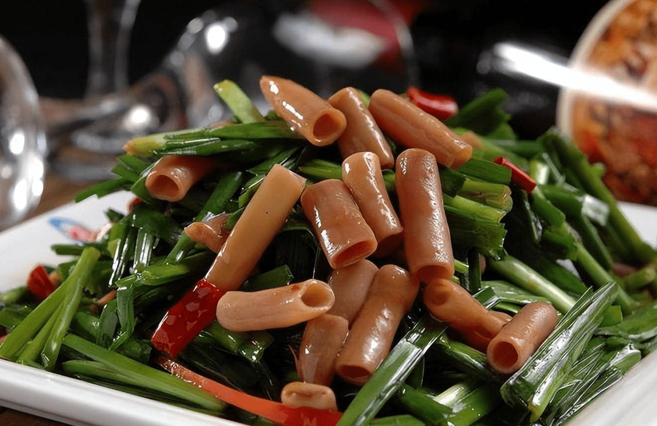 韭菜炒海肠,让海肠这种”小众海鲜“也发挥出了它特有的鲜味,与韭菜炒制之后,让海肠变得口感脆嫩,鲜甜,加上韭菜的鲜辛,让原本小众海鲜,也变得别具一格,海肠实际上在大连海鲜菜品中,并非主流,但是韭菜炒海肠,还有:韭菜海肠水饺,堪称是大连特色菜的代表之一。