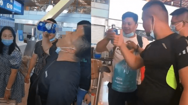 飞机遇到不能托运的白酒该怎么办?近日,云南昆明上演了现实版“人在囧途”——六个大哥直接在机场喝了一斤开瓶的白酒。图中,一位大哥拿着白酒告诉大家“干了”,然后疯狂地喝了一口,然后把酒递给了旁边的人,旁边的人也疯狂地喝了一口,很快,一瓶酒被六个大哥喝了,人们对此有不同的看法。