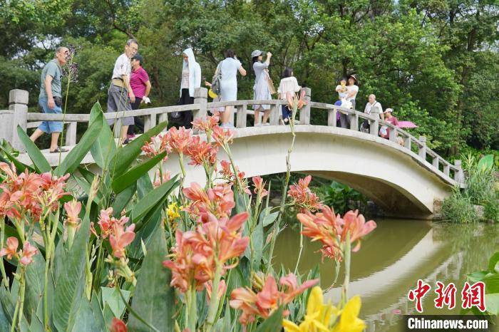 中新网柳州7月9日电(韦国政)7月9日,时值周末,广西柳州市鱼峰区龙潭公园里万株美人蕉盛开,与各色水生花卉和时令草花一起,构成色彩缤纷的滨水花境。游客纷至沓来,乐享周末悠闲时光。