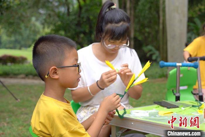 图为亲子体验美人蕉手工制作。 韦国政 摄