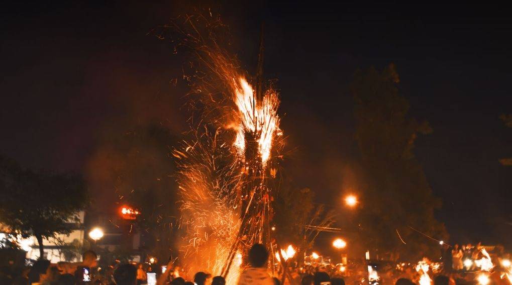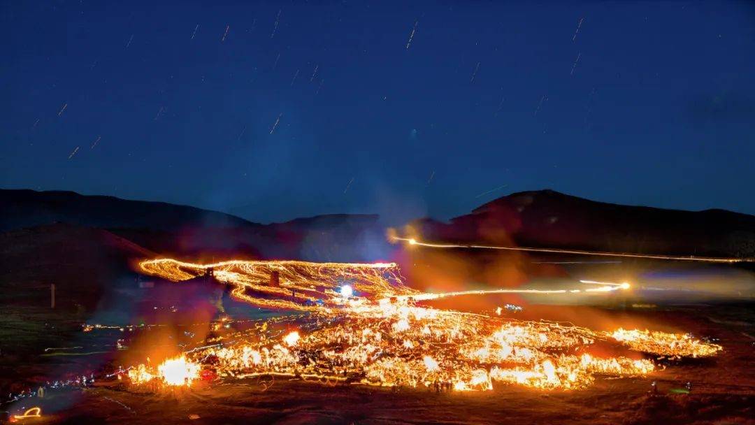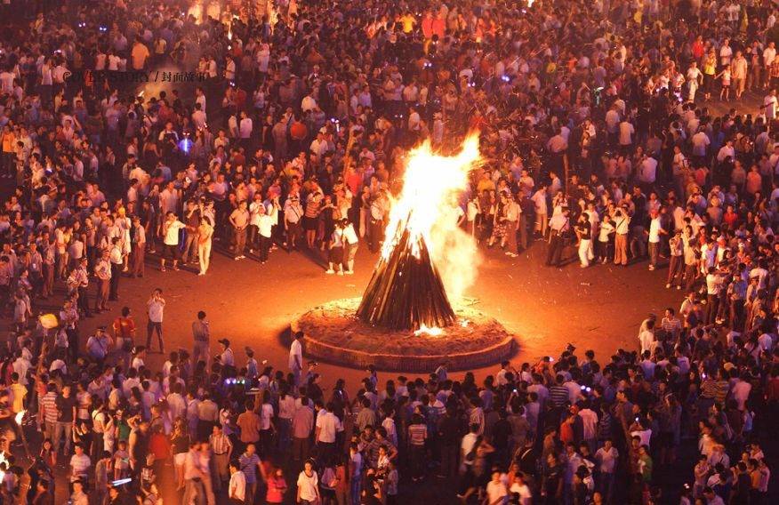 熊熊的火焰直升天空,漫山遍野都被火光照亮, 狂欢的人们将火焰围成盛大的舞场,接连三天的狂欢就此点燃。