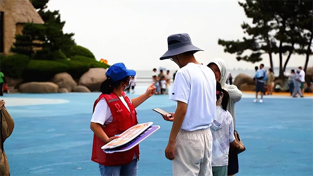 自暑期以来,威海市各景点游客络绎不绝。为迎接旅游旺季,创建文明和谐的旅游环境,经开区在韩乐坊和悦海公园设置2个新时代文明实践志愿服务站,每天组织30余名志愿者为游客提供旅行指引、应急药品、协助拍照、行李寄存等服务,现场准备了“活力经区欢迎您”“与你相遇在灯塔”等10余种手举牌,可供现场拍照打卡,同时为游客发放《乐享经开区导览图》等文明旅游地图。