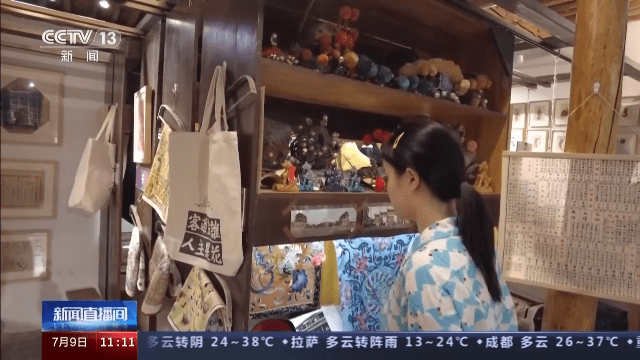 记者看到,这个40多平方米的店面里,摆放着琳琅满目的非遗产品,有金边勾勒的铜镜、与古建筑设计相结合的斗拱,还有融合了当代艺术的插画,吸引了来自全国各地的游客。