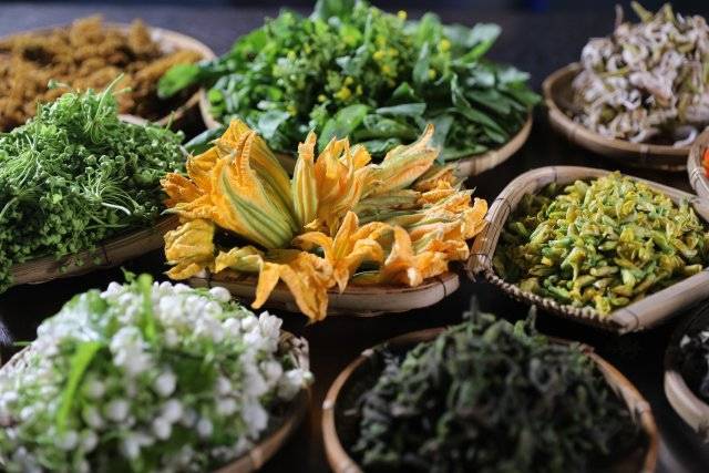 为了更好地吸引食客,酒店的厨房里,各种或来自大山深处、或来自农家庭院的鲜花食材已经摆放整齐。大厨们菜刀一动,锅铲一挥,一系列行云流水的“表演”,乌鸡炖甜菜花、芭蕉花煮红烧肉、套炸茉莉花、金雀花煎蛋、桂皮花炒腊肉……一道道色香味俱全的鲜花菜品,冒着热气被送上了餐桌上。