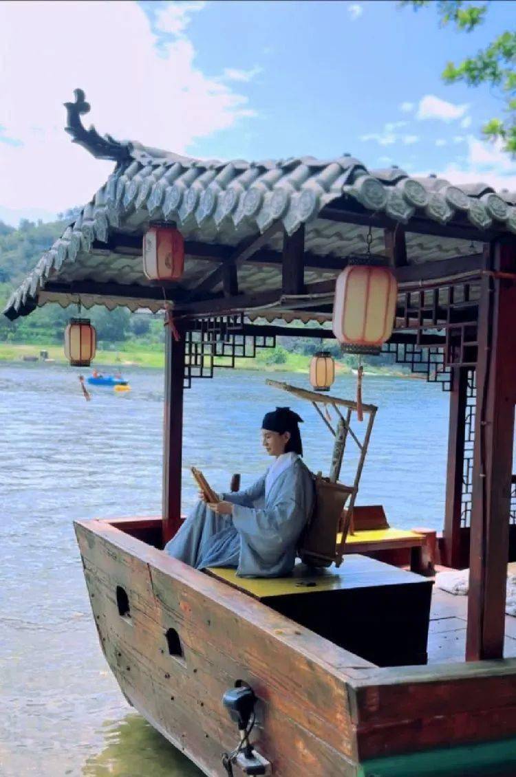 对岸青山映衬着碧绿的江水,停靠在浮桥的画舫和游船,成了体验师们打卡的道具。赤热的艳阳也挡不住一趟趟的拍摄,这绝对是真爱。