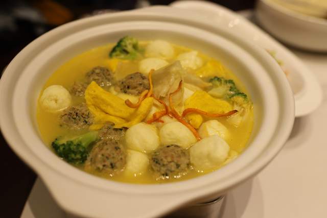 杂丸锅,里面有鱼丸,牛肉丸等,还有蛋角和西兰花,非常有特色喔。