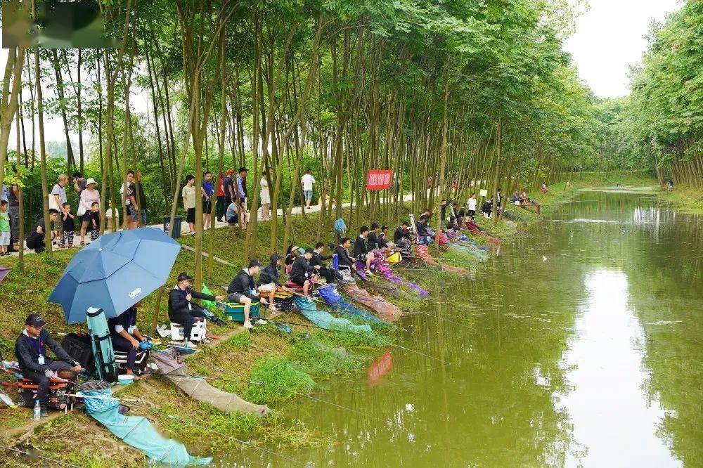 比赛现场,随着裁判员一声令下,选手们精神饱满地携带钓鱼装备来到指定钓位,沿着河渠两岸依次排开,星星点点、场面壮观。