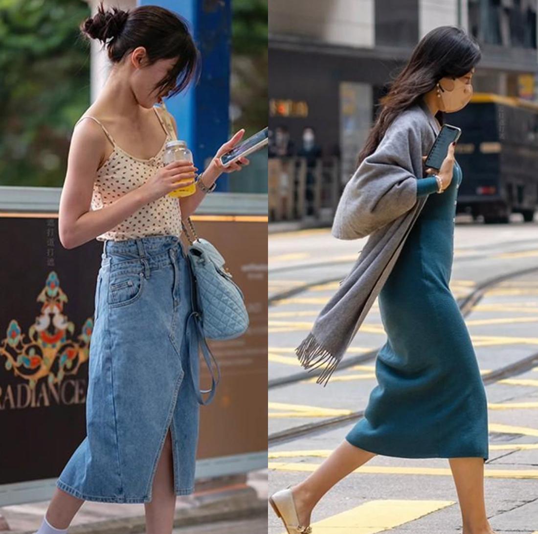 从颜色上来说,大红、绿色的长裙色彩缤纷、大地色,也增加了搭配的难度。香港女孩喜欢的纯色长裙简单百搭,避免款式上的“翻车”。