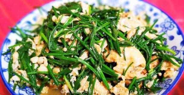 沙葱炒蛋:首先沙葱又叫蒙古韭,李时珍在其药学宝典《本草纲目》中有详细的记载。吃完有一种置身于内蒙古沙地的感觉,充满野味的清新。