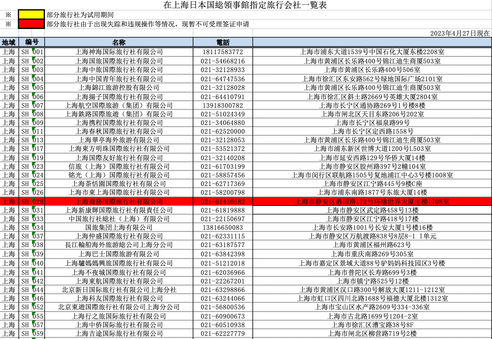 △据日本国驻上海领事馆,拥有签证代办资质的旅行社(部分名单)。