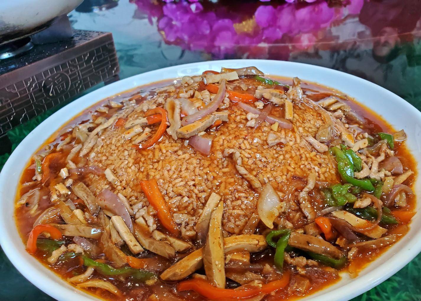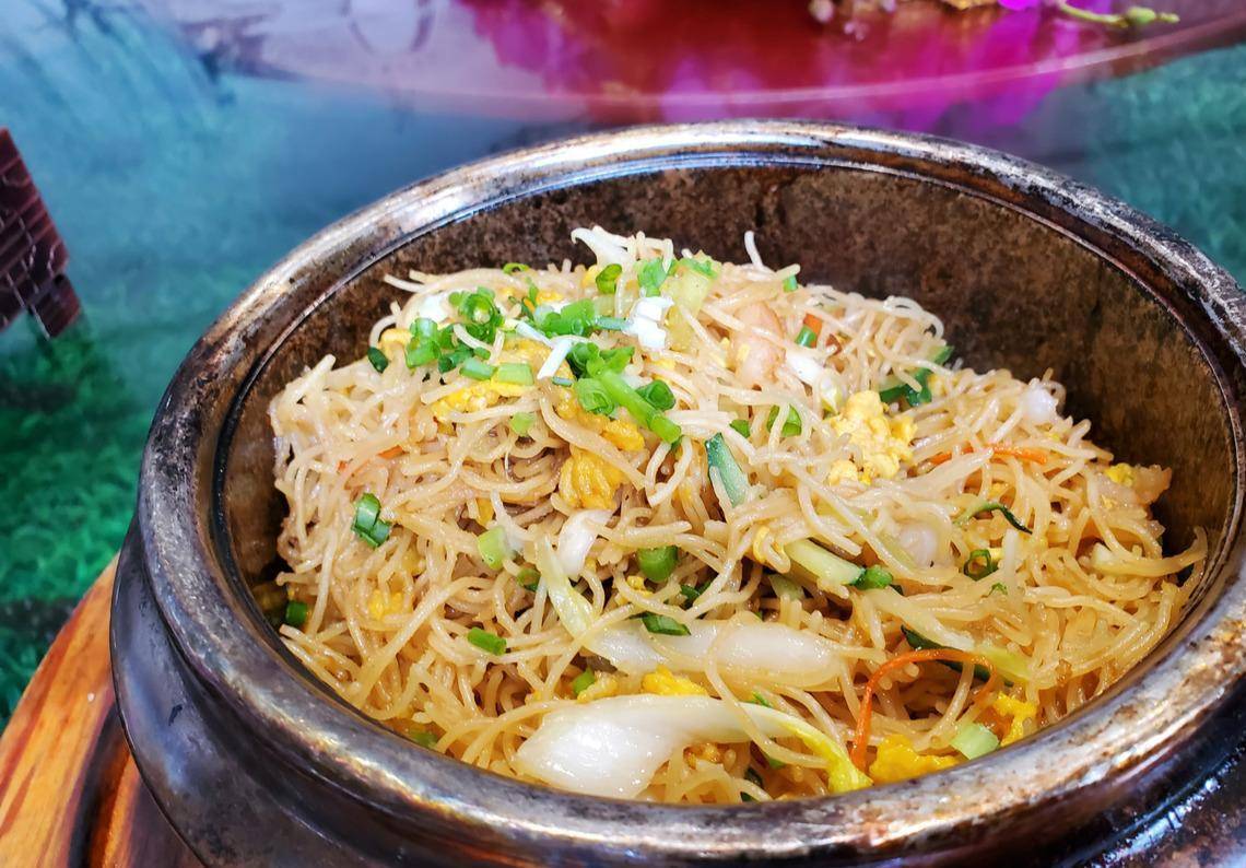 小马推荐的第5个美食就是炒面,宁国的炒面质地非常细,看起来有点像我们寻常吃到的粉丝形状,先用热水把这种面煮熟,再放入锅里翻炒,吃的时候可以叮嘱老板加上香葱、鸡蛋、辣椒酱等食材。虽然看起来像是小吃,但其实几乎成为了宴会或者聚餐桌上必备的美食之一。