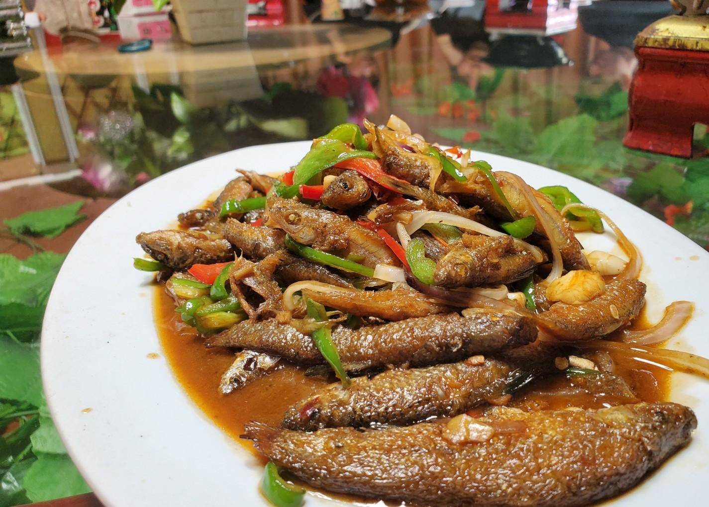小马推荐的第3个美食就是小河鱼,由于宁国这里山清水秀,境内的三条河流至今没有受到污染,因此这里的小河鱼非常新鲜,成为了宁国人餐桌上最经久不衰的大菜之一。在任何土菜馆或者寻常人家里都能吃到正宗的从河里打捞上来不久的小河鱼。小马最喜欢的烹煮方式就是油炸,搭配上香蒜,吃起来很爽口,咬在嘴里鱼刺都可以被嚼烂。