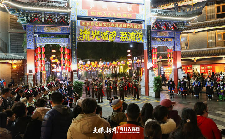 晚间,荔波古镇丰富的民族文化表演吸引了游客前来观看。