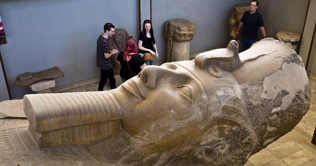 在博物馆内最著名的当属那尊躺着的巨型拉美西斯二世(RamessesII)花岗岩雕像和古埃及第18王朝时期的狮身人面像。