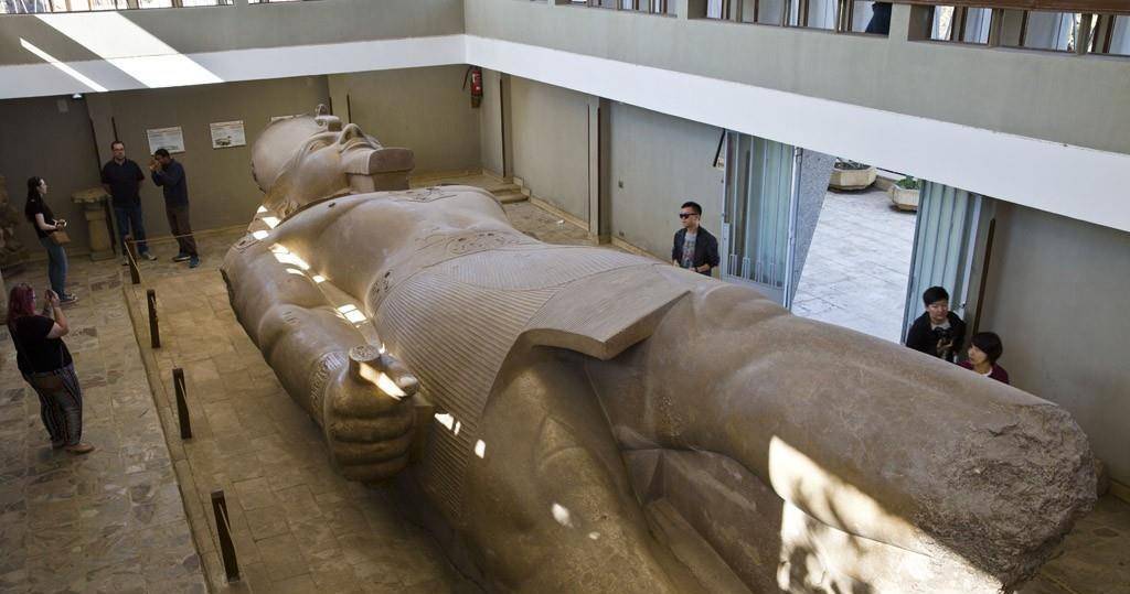 可惜的是,在一次地震中,雕像的双腿和左手折断了,现在的拉美西斯二世只能横躺在博物馆大厅的地上。整个陈列室为二层建筑,想看雕像的细节就在一层,上二楼绕一圈可以看到整个雕像的全貌。二楼还有专门供游客眺望的小阳台,视野不错,很开阔。