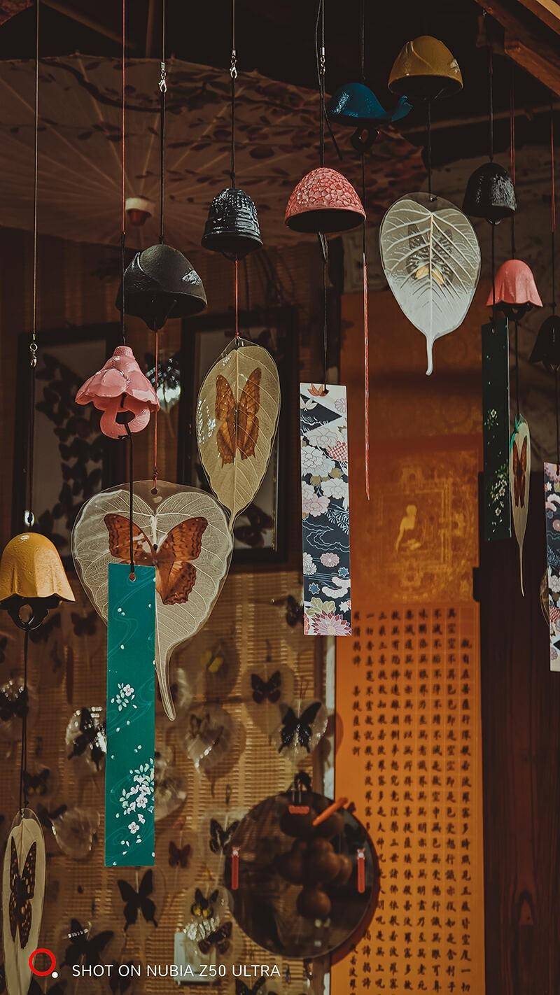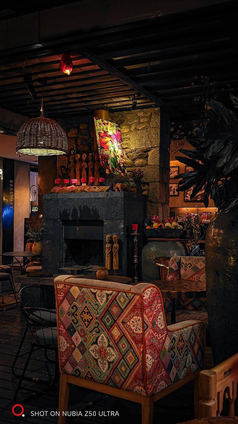 不凑巧,逛得正开心的时候突然来一场雷雨,转头进了这家有着浓烈民族风情的咖啡店,店里不是灯火辉煌的布光,而是用了很多照射范围窄的射灯来营造氛围。不过这难不倒努比亚Z50 Ultra的,看拍出来的这张图,细节满满的。