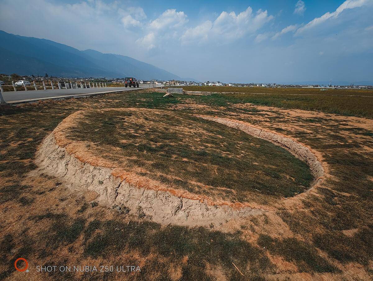大树是在一大片麦田地里,这边还有很多这样被翘起来的土,不知道有何用意。